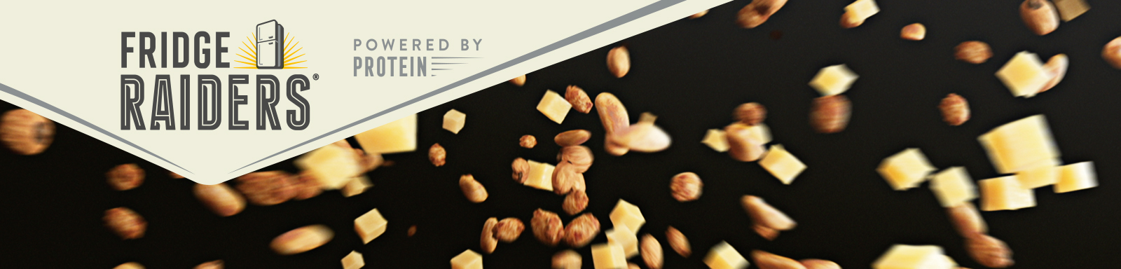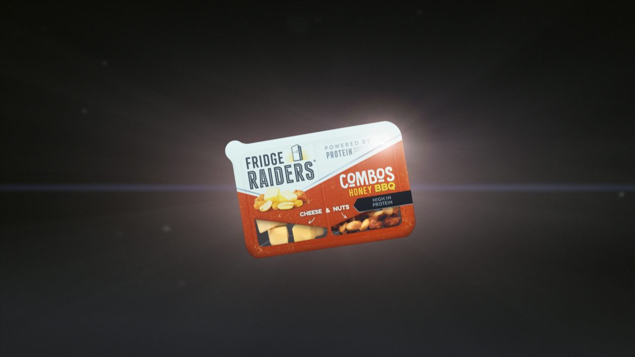 Working with Saatchi and Saatchi, London, we delivered a 3D sequence to showcase the Fridge Raiders ‘Powered by Protein’ range. Individual pieces of cheese and nuts were modelled and then animated with specific physical dynamics to illustrate the ‘double protein power’ – the sequence culminates with the cheese and nuts colliding together to form the packaging.